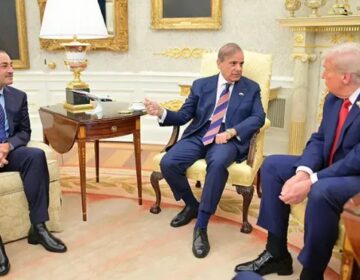 وزيراعظم شهباز شريف ۽ آرمي چيف فيلڊ مارشل عاصم منير آمريڪي صدر ڊونلڊ ٽرمپ سان وائٽ هائوس ۾ ملاقات ڪئي۔ ملاقات کان پوءِ جاري ڪيل تصويرن ۾ وزيراعظم شهباز شريف ۽ فيلڊ مارشل عاصم منير کي ٽرمپ سان ڳالهيون ڪندي وڌيڪ پڙھو
